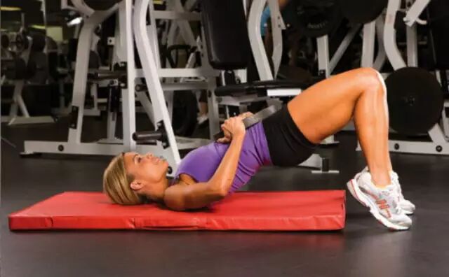 仰卧平躺-屈膝收腿-收缩腹肌臀大肌挺起。如果觉得自重不够带劲,可以抱一个杠铃片。