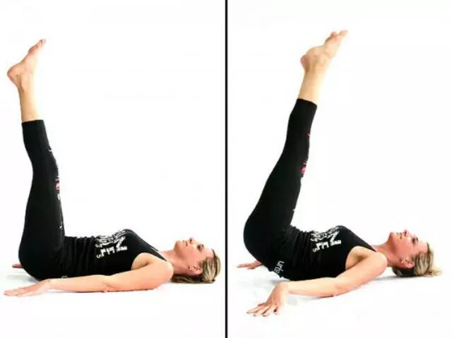 平躺抬腿,使你的腿和身体形成一个L 形。提髋直至你的臀部离开地面。