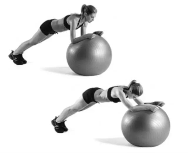 以平板支撑的姿势趴在一个健身球上面,身体伸展-收缩。个人感觉跟腹肌轮有点类似。